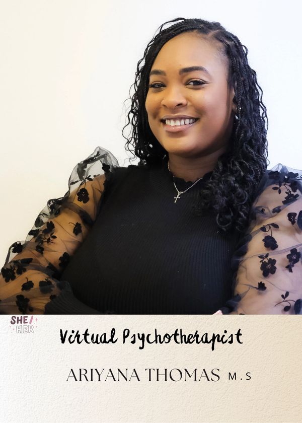 Hi! My name is Ariyana. I am a master’s level therapist with a degree in counseling. Through our work together, my hope is to support you in achieving your personal goals using a warm, holistic, and strength-based approach. I believe therapy should be a safe and genuine space where you feel comfortable showing up as your most authentic self.